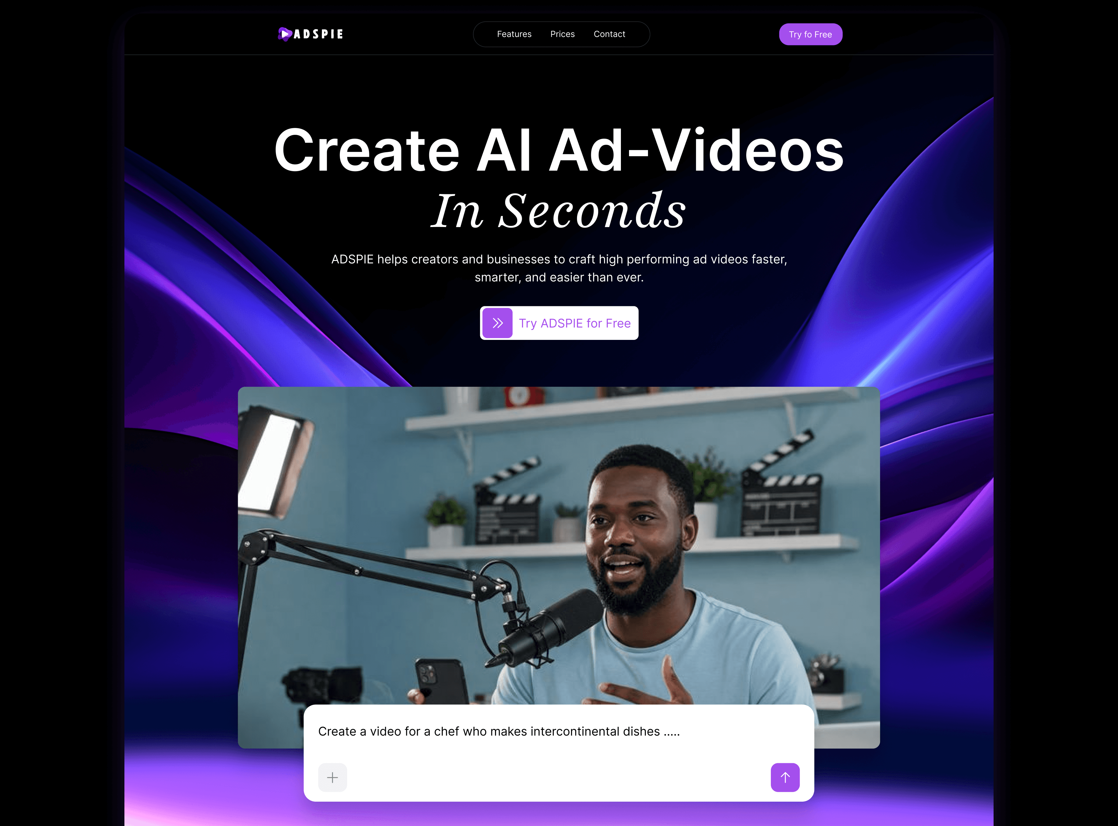 ADSPIE is a modern AI-powered advertisement video generation platform designed to help businesses, marketers, and content creators produce high-quality ad videos effortlessly.