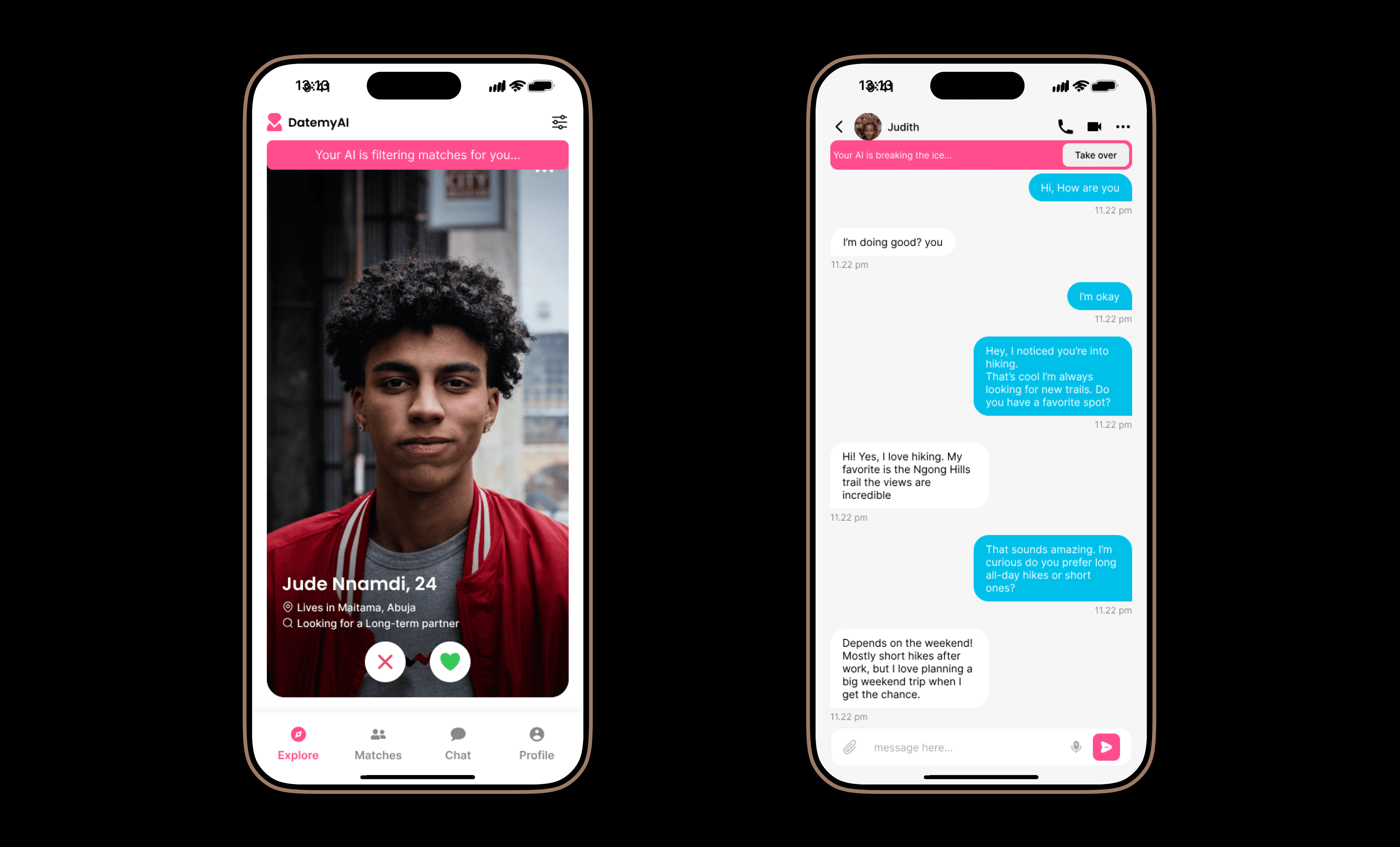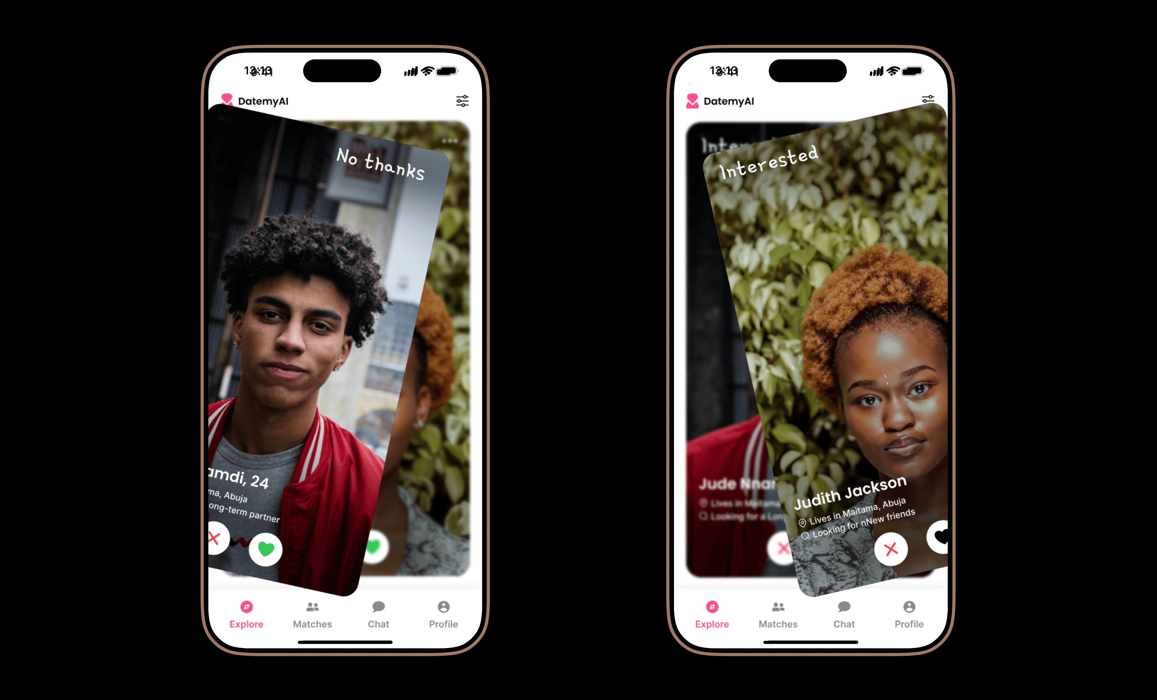 The final design of DateMyAI delivers a next-generation dating experience one that blends human emotion with artificial intelligence to make digital connection more natural, personal, and exciting. The result is a visually striking, emotionally intelligent, and behaviorally adaptive dating platform that redefines how users meet and interact online.